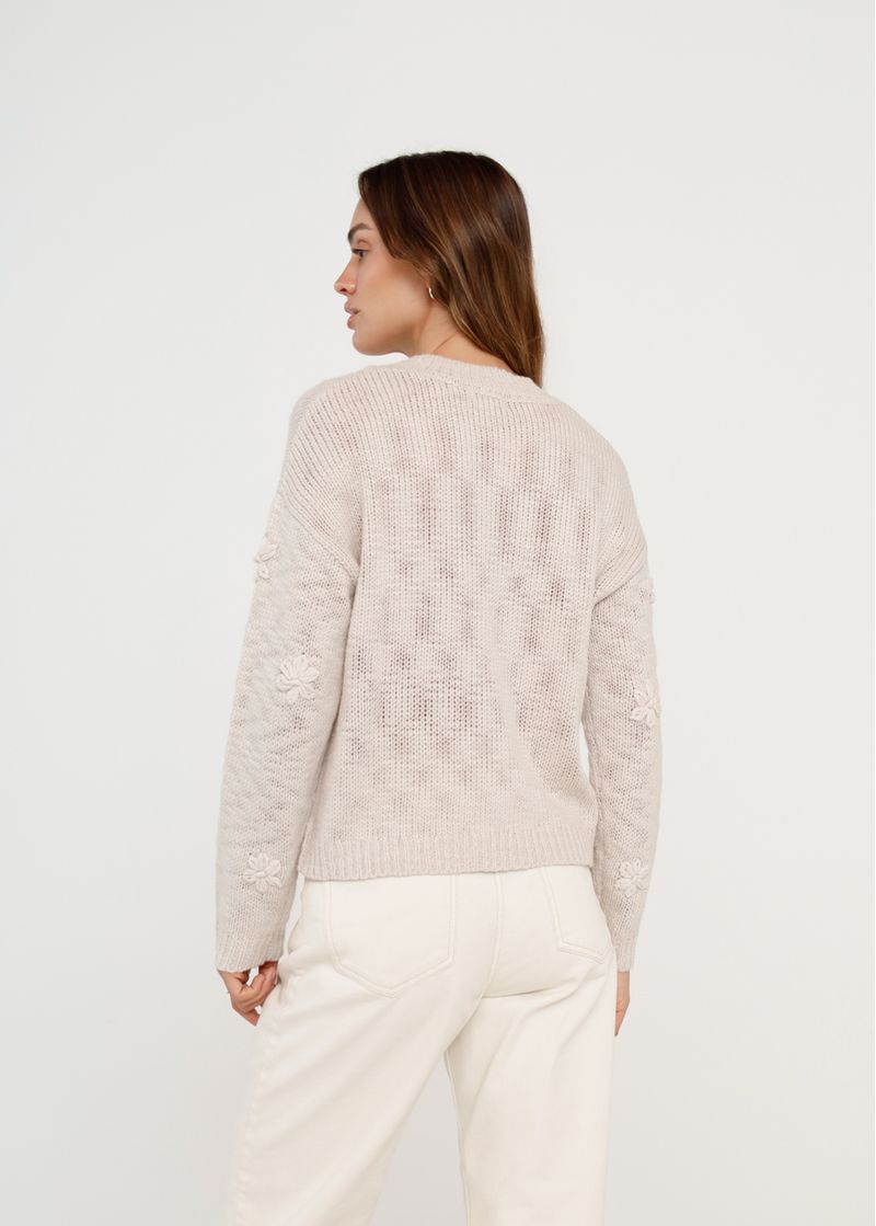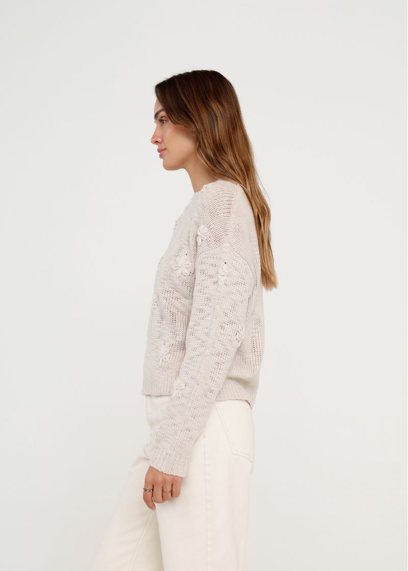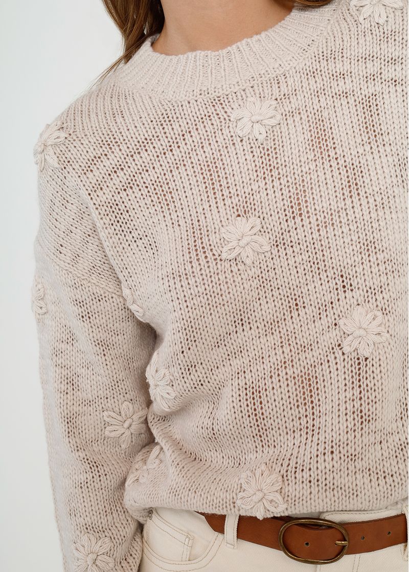 • Apliques de flores tejidas.