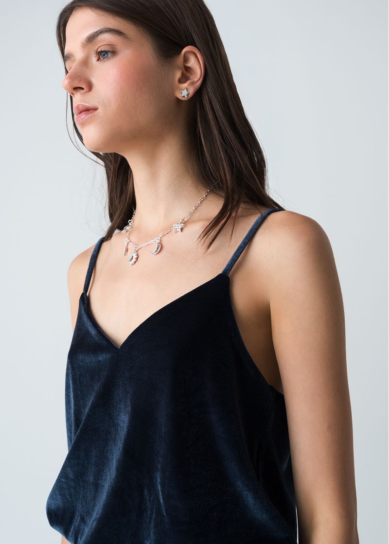 • Su confección con un estilo metalizado es ese plus de modernidad que tus planes formales necesitan.