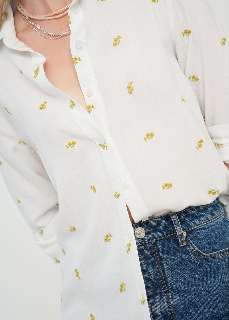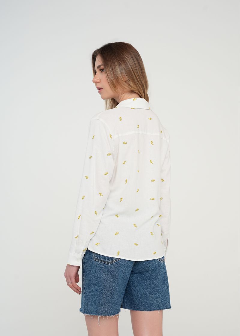 Camisa manga larga con flores bordadas