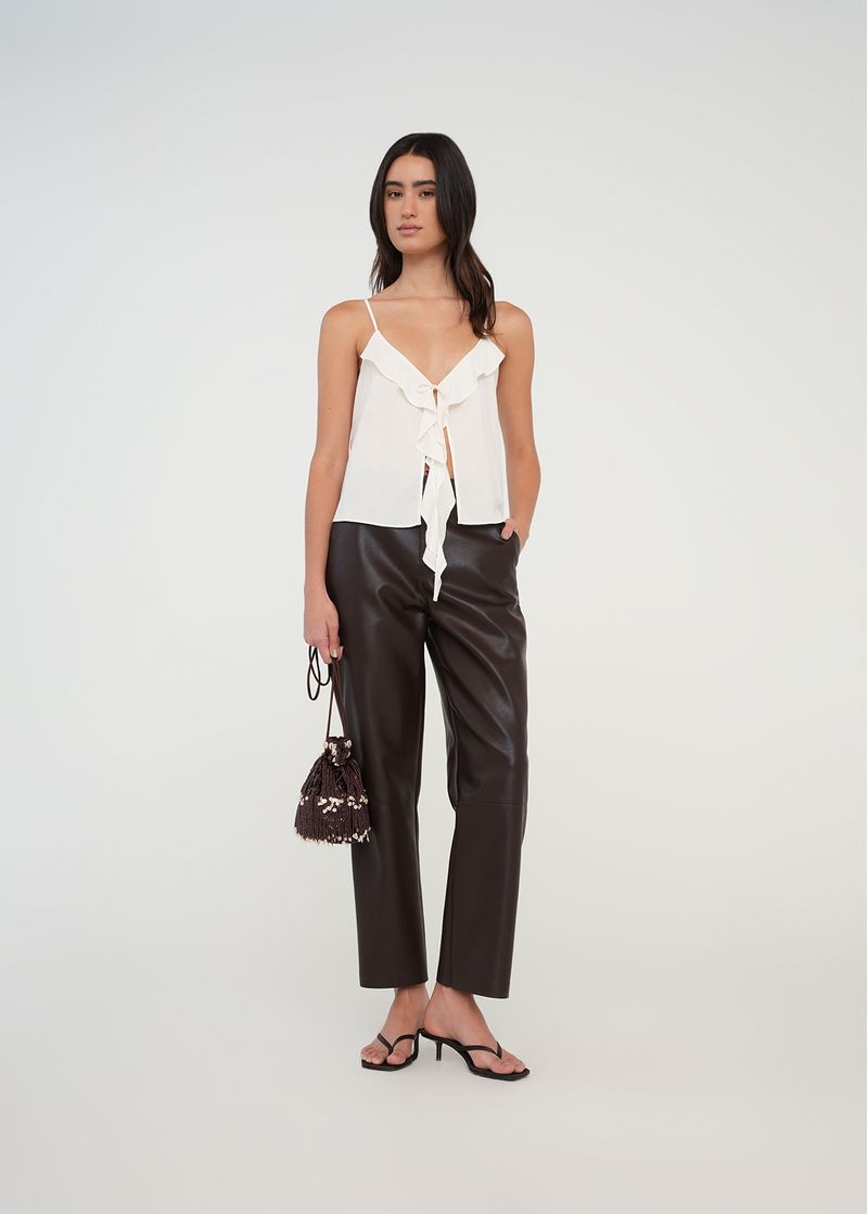 Esta camisa es la elección perfecta para tus días de descanso. Con un ajuste regular y una caída suave, te ofrece comodidad y estilo en cada movimiento. Su diseño con cuello anudado y mangas con tiras le da un toque moderno y versátil.