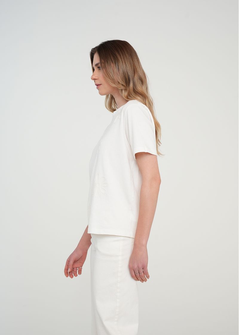 • Flores bordadas a tono.