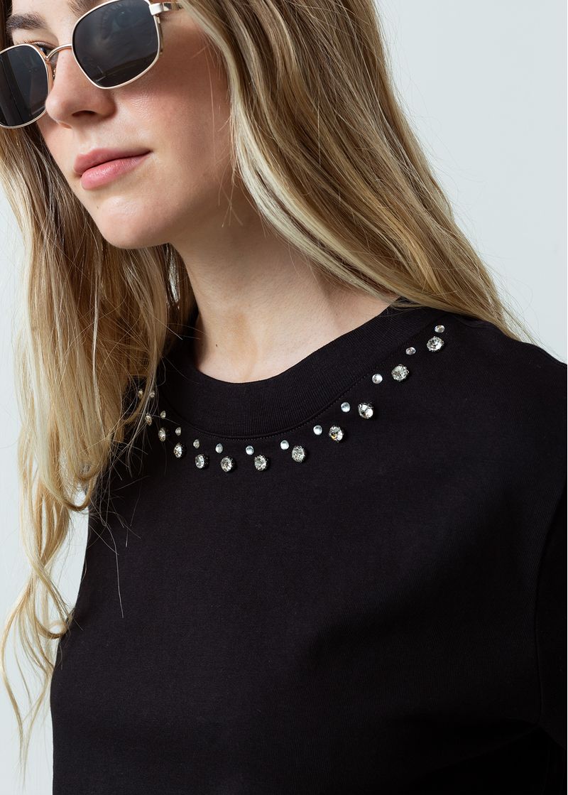 • Apliques brillantes en cuello y puños.