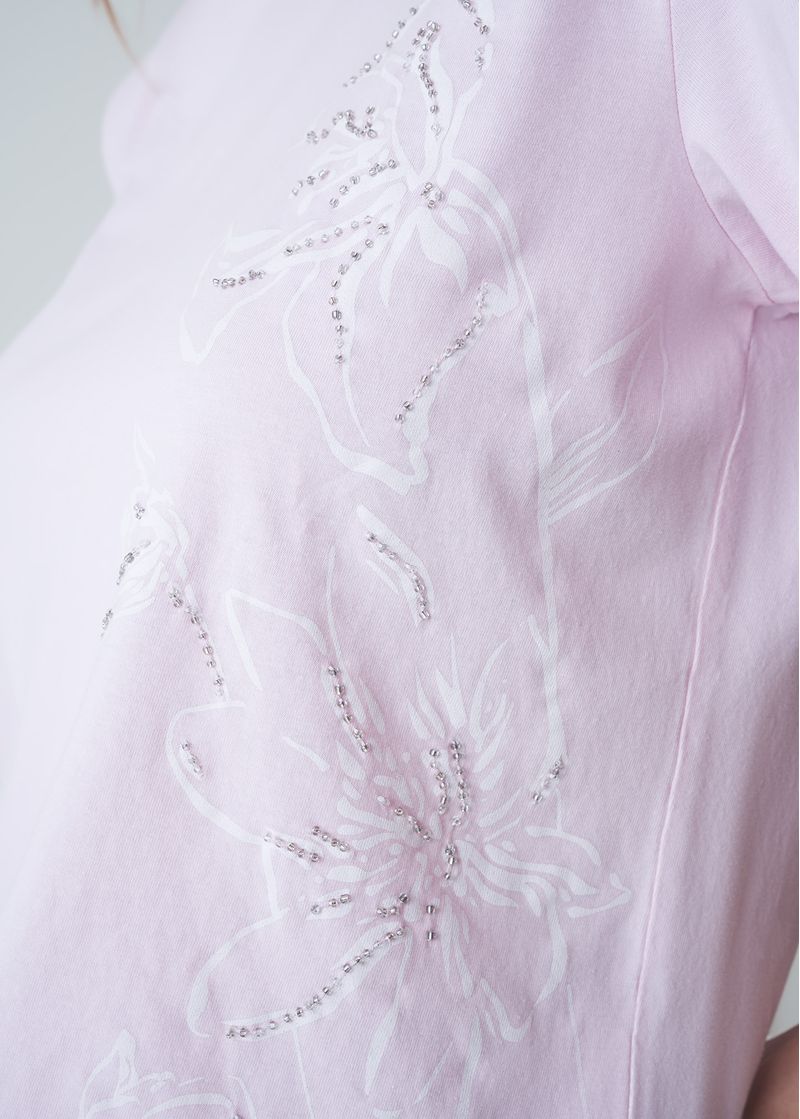 • Flores estampadas con apliques en frente.