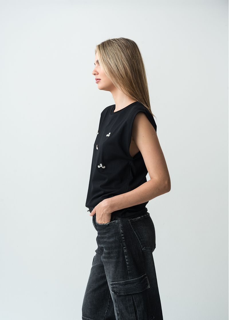 Camiseta con apliques de piedras