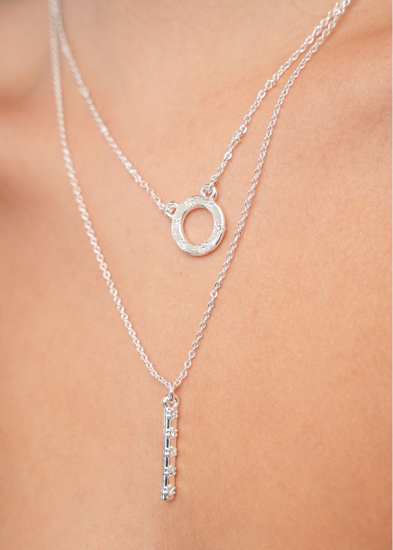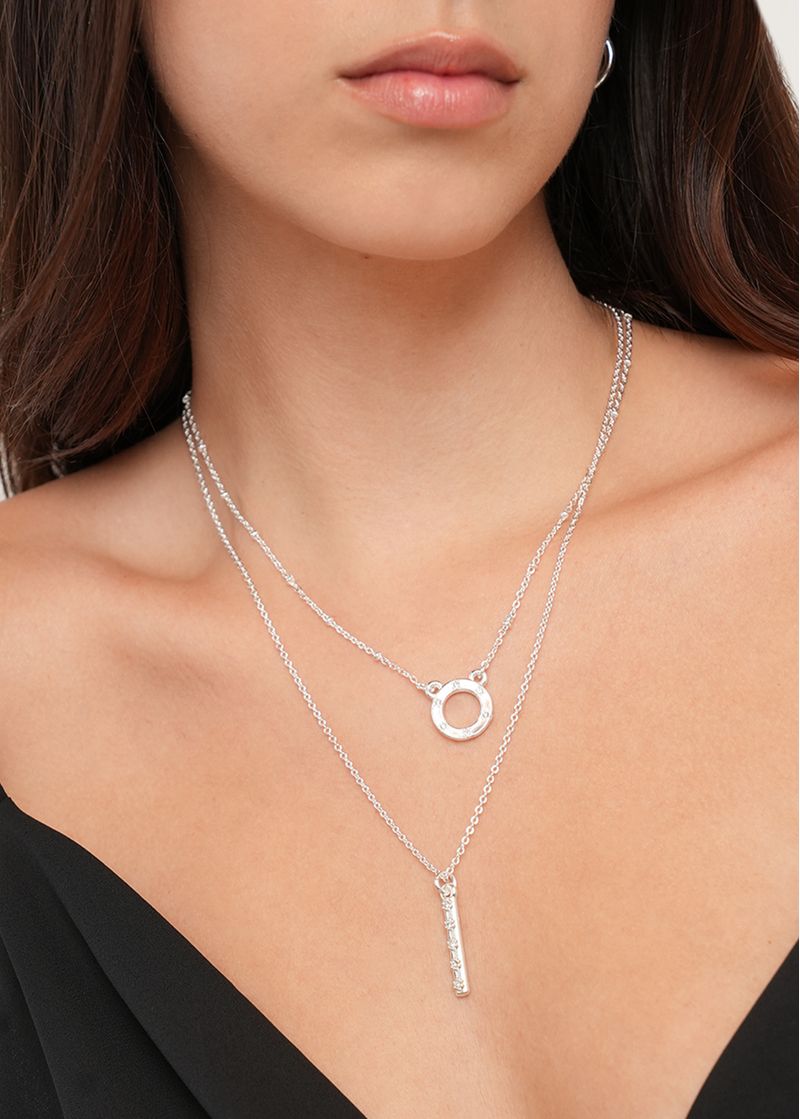 • Dije circular con detalles brillantes.