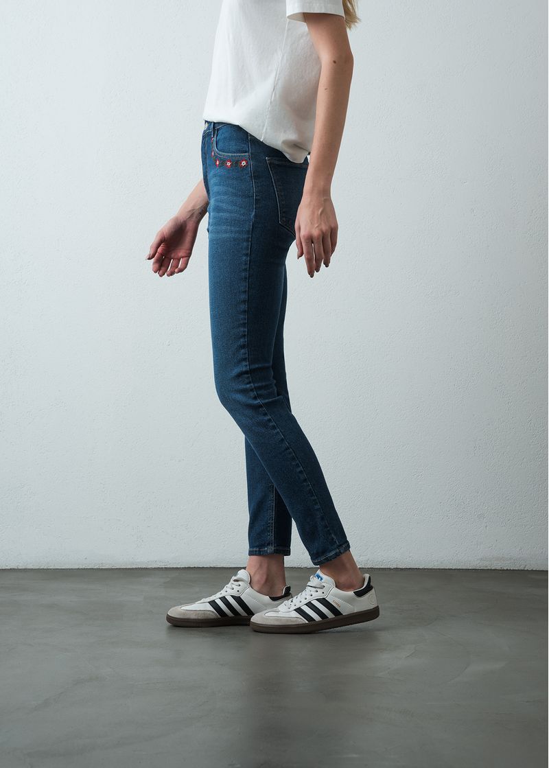 • Bordado de flores en silueta de bolsillos.