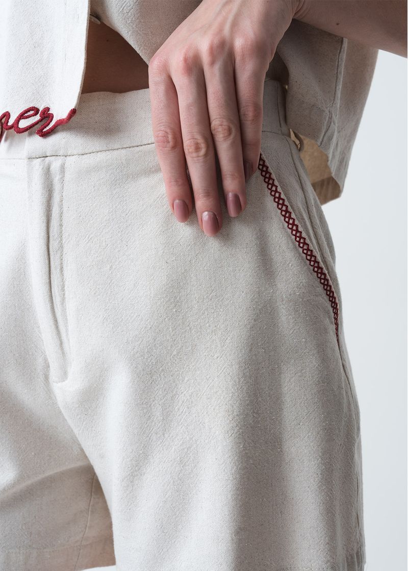 • Detalles tejidos en boca de bolsillos.